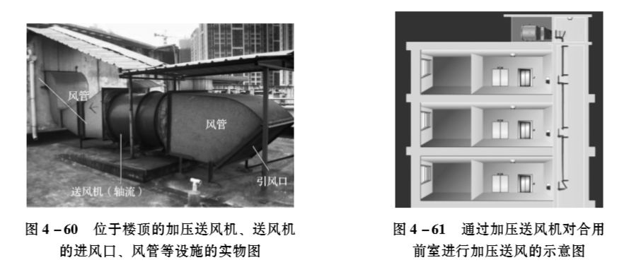 機械加壓送風風機宜采用軸流風機或中、低壓離心風機,其設置應符合下列規(guī)定: