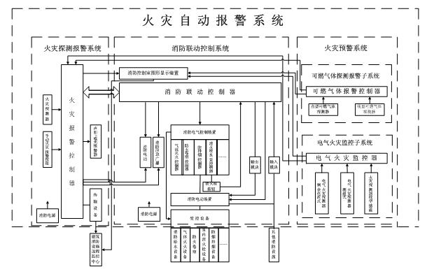 控制中心報(bào)警系統(tǒng)由火災(zāi)探測器、手動火災(zāi)報(bào)警按鈕、火宅聲光警報(bào)器、火災(zāi)報(bào)警控制器、消防應(yīng)急廣播、消防專用電話、消防控制室圖形顯示裝置、火災(zāi)報(bào)警控制器、消防聯(lián)動控制器等組成,且包括兩個(gè)及以上集中報(bào)警系統(tǒng)。