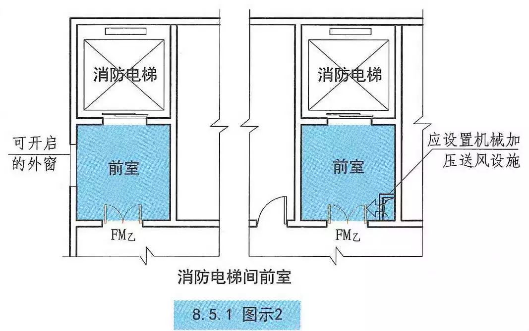 (2)前室的使用面積公共建筑不應小于6m2,住宅面積不應小于4.6m2;與防煙樓梯間合用的前室,公共建筑不應小于10m2,住宅建筑不應小于6m2;