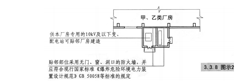 4、變、配電站不應(yīng)設(shè)置在甲、乙類廠房?jī)?nèi)或貼鄰建造,且不應(yīng)設(shè)置在具有爆炸性氣體、粉塵環(huán)境危險(xiǎn)區(qū)域內(nèi)。供甲、乙類廠房專用的10KV及以下的變、配電站,當(dāng)采用無門、窗、洞口的防火墻分割時(shí),可一面貼鄰。