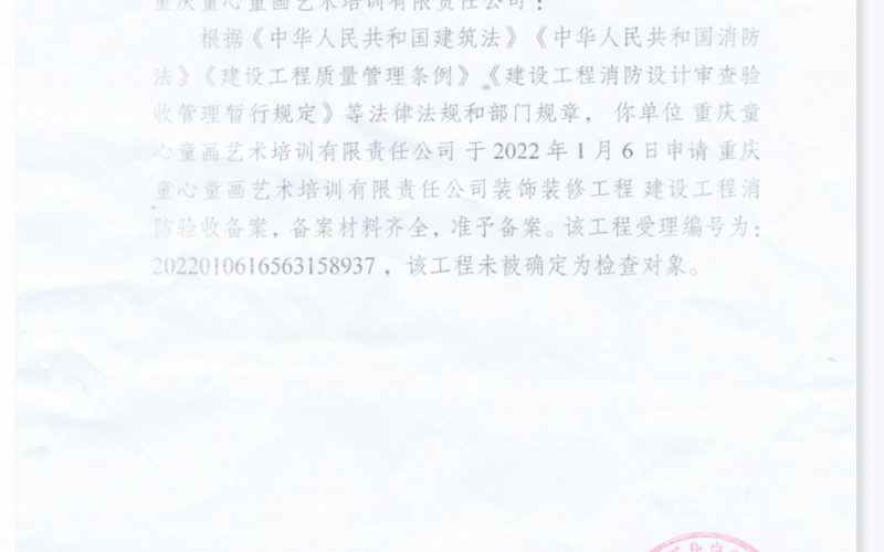 重慶童心童畫藝術培訓有限責任公司消防備案案例-鼎堂消防