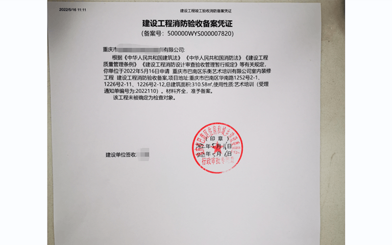重慶市樂衡藝術(shù)培訓(xùn)有限公司消防備案案例-鼎堂消防